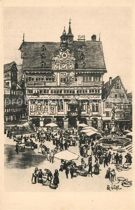 Tuebingen Rathaus Kuenstlerkarte Tuebingen postalisch nicht gelaufen bis 1920 Erhaltung siehe scans [KathaD81] Kathoren