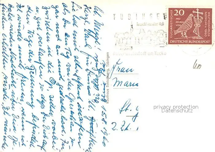 Tuebingen Schlossblick von der Inselbruecke Tuebingen postalisch gelaufen 1968 Erhaltung siehe scans [WerneD78] WernPID7