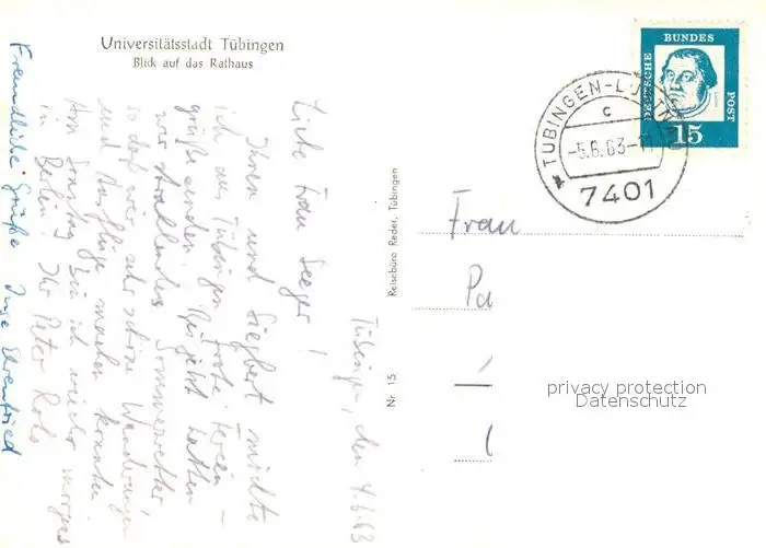 Tuebingen Universitaetsstadt Rathaus Tuebingen postalisch gelaufen 1963 Erhaltung siehe scans [LiesaD40] LiesID40