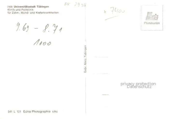 Tuebingen Zahn Poliklinik Tuebingen postalisch nicht gelaufen 1969 Erhaltung siehe scans [KathaD81] Kathoren