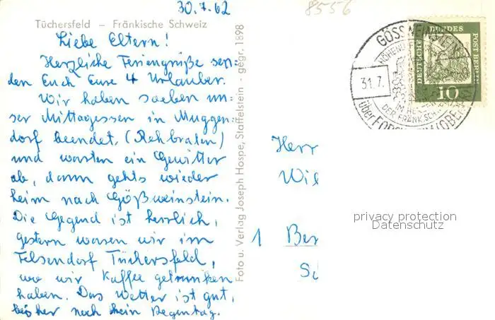 Tuechersfeld Panorama Felsen Tuechersfeld postalisch gelaufen 1962 Erhaltung siehe scans [KathaD81] Kathoren