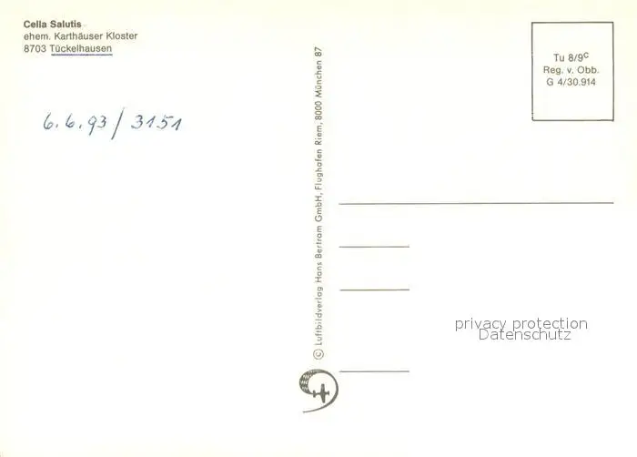 Tueckelhausen Cella Salutis ehem Karthaeuser Kloster Fliegeraufnahme Tueckelhausen postalisch nicht gelaufen nach 1965 Erhaltung siehe scans [WerneD78] WernPID7