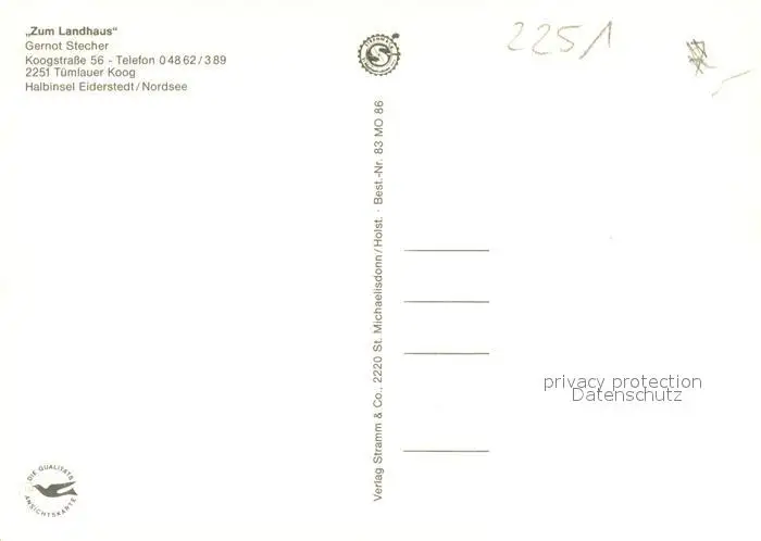 Tuemlauer_Koog Zum Landhaus Halbinsel Eiderstedt Nordsee postalisch nicht gelaufen nach 1965 Erhaltung siehe scans [FriedD77] Frierer