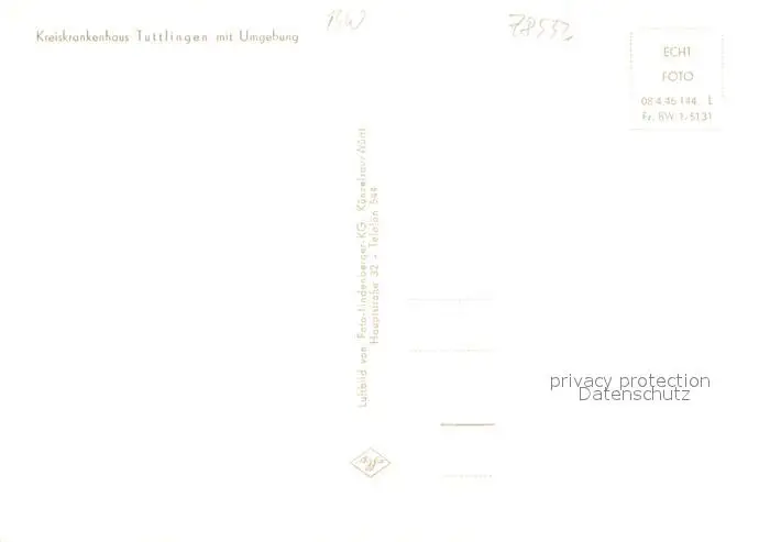 Tuttlingen Kategorie Alte Ansichtskarten Postkarten bx92993 Tuttlingen Kreiskrankenhaus Fliegeraufnahme Tuttlingen postalisch nicht gelaufen nach 1965 Erhaltung siehe scans [WerneD78]