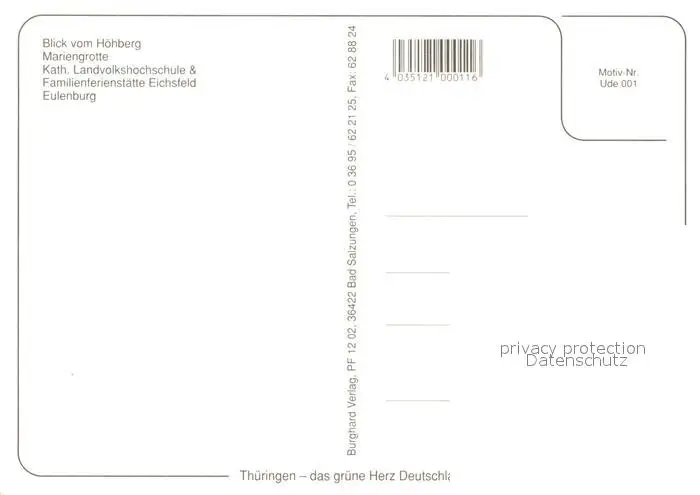 Uder Mariengrotte Landvolkshochschule Familienferienstaette Eulenburg Uder postalisch nicht gelaufen nach 1965 Erhaltung siehe scans [KathaD81] Kathoren