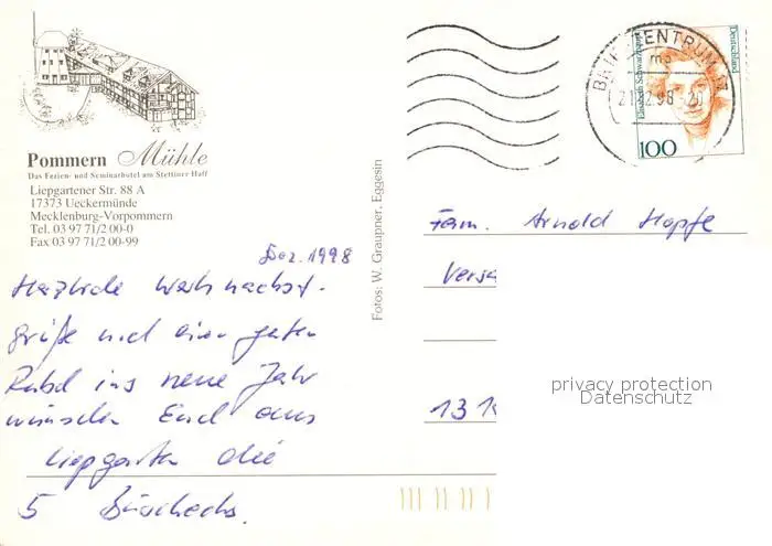 Ueckermuende_Mecklenburg_Vorpommern Pommern Muehle Strand Ueckermuende_Mecklenburg postalisch gelaufen 1998 Erhaltung siehe scans [LiesaD40] LiesID40