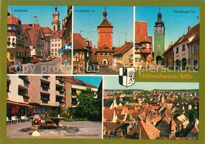AK / Ansichtskarte Uffenheim Marktplatz Ansbacher Tor Wuerzburger Tor Gerlach von Hohenlohestift Stadtpanorama Uffenheim