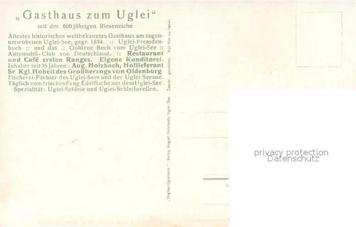 Uglei_See Gasthaus zum Uglei 600jaehrige Rieseneiche Uglei_See postalisch nicht gelaufen 1921-1965 Erhaltung siehe scans [KathaD81] Kathoren