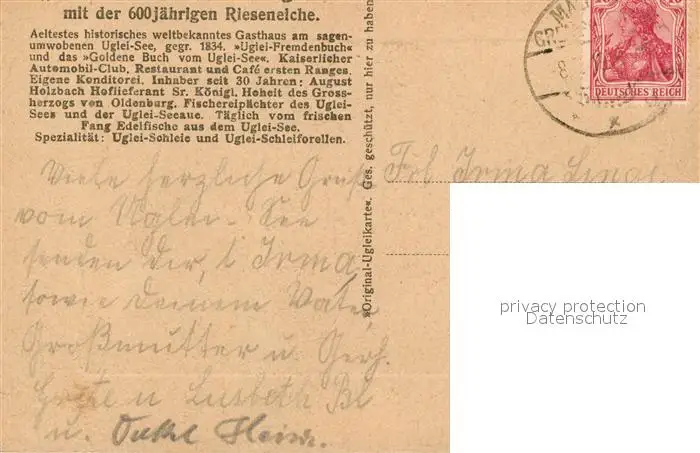Uglei_See Sage Spielplatz Uglei Nixe Uglei_See postalisch gelaufen bis 1920 Erhaltung siehe scans [KathaD81] Kathoren