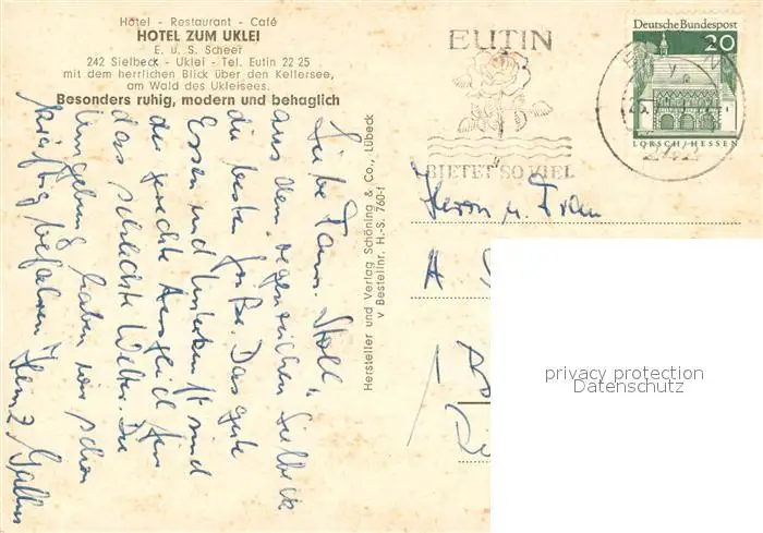 Uklei_Sielbeck Hotel Restaurant Café Hotel zum Uklei Baumbluete Uklei_Sielbeck postalisch gelaufen 1969 Erhaltung siehe scans [FriedD77] Frierer