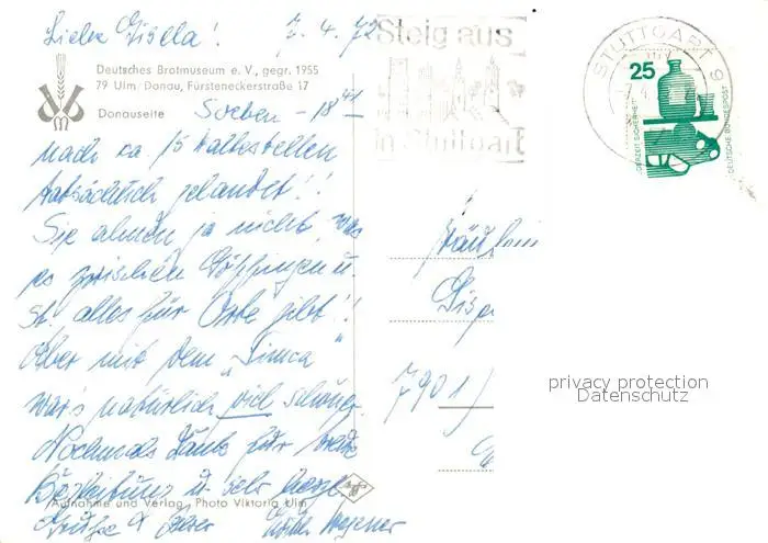Ulm_Donau Deutsches Brotmuseum Ulm_Donau postalisch gelaufen 1972 Erhaltung siehe scans [LiesaD40] LiesID40