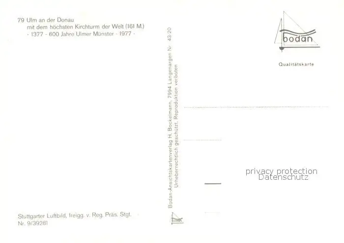 Ulm_Donau Fliegeraufnahme Muenster Ulm_Donau postalisch nicht gelaufen nach 1965 Erhaltung siehe scans [KathaD81] Kathoren