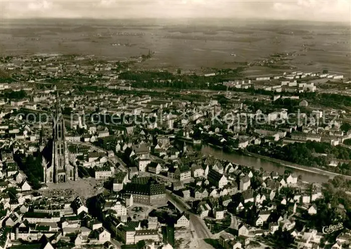 Ulm_Donau Fliegeraufnahme mit Neu-Ulm Ulm_Donau postalisch nicht gelaufen 1921-1965 Erhaltung siehe scans [WerneD78] WernPID7