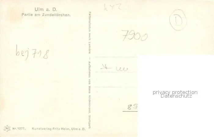 Ulm_Donau Partie am Zundeltoerchen Ulm_Donau postalisch nicht gelaufen 1921-1965 Erhaltung siehe scans [WerneD78] WernPID7