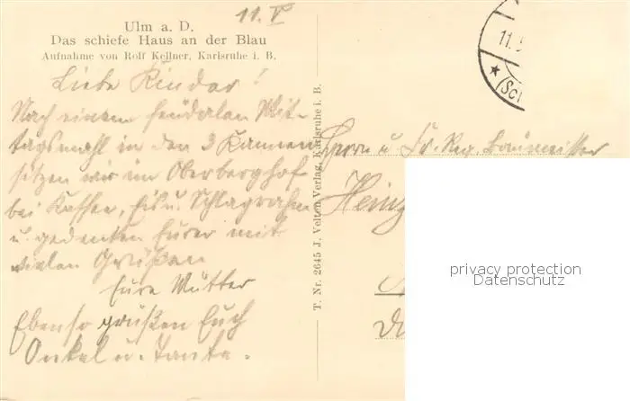 Ulm__Donau Das schiefe Haus an der Blau postalisch gelaufen 1921-1965 Erhaltung siehe scans [WerneD78] WernPID7