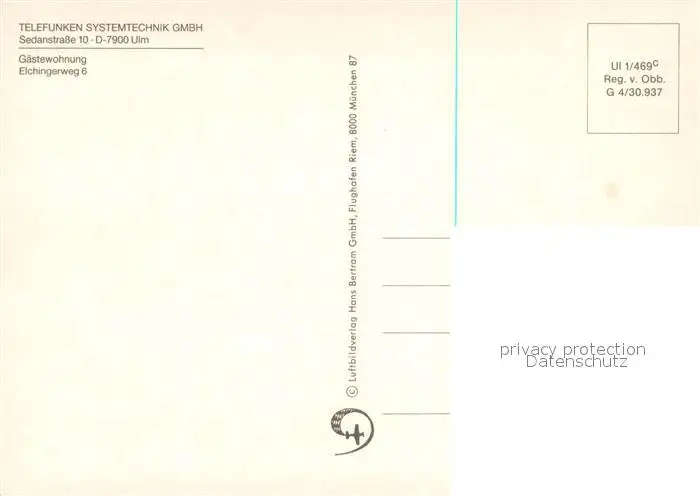 Ulm__Donau Telefunken Systemtechnik GmbH Fliegeraufnahme postalisch nicht gelaufen nach 1965 Erhaltung siehe scans [WerneD78] WernPID7