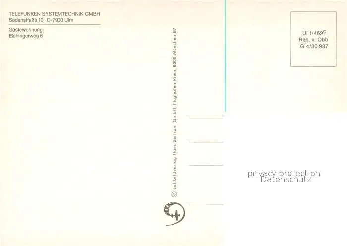 Ulm__Donau Telefunken Systemtechnik Gmbh Hochhaeuser Fliegeraufnahme postalisch nicht gelaufen nach 1965 Erhaltung siehe scans [WerneD78] WernPID7