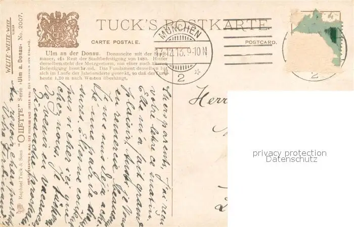 Ulm__Donau Ulm an der Donau OLLETTE Nr.2007 postalisch gelaufen 1913 Erhaltung siehe scans [IrynaD87] Iryn PID