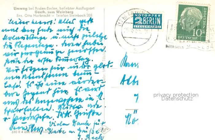 Umweg_Baden Kategorie Alte Ansichtskarten Postkarten bx90996 Umweg_Baden Gasthaus zum Weinberg Umweg_Baden postalisch gelaufen Erhaltung siehe scans [PaolaD17]