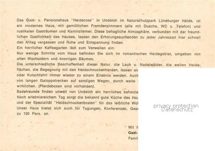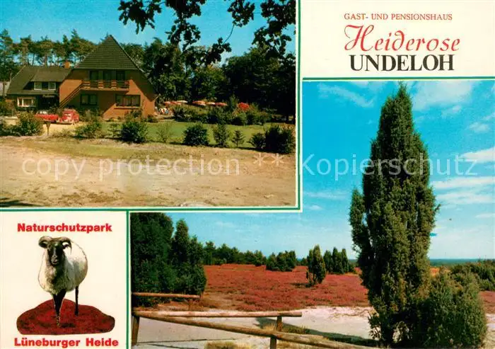 Undeloh Gasthaus Pension Heiderose Heidschnucke Heidelandschaft Undeloh postalisch nicht gelaufen nach 1965 Werbekarte (keine Postkarte) Erhaltung siehe scans [FriedD77] Werbekarte (keine Postkarte) Frierer