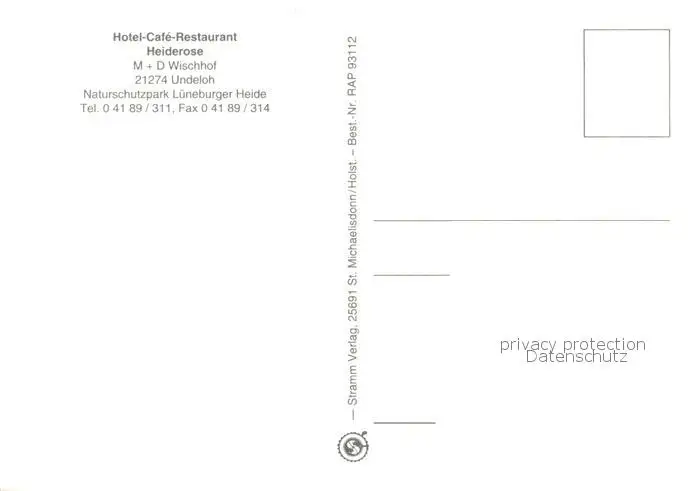 Undeloh Hotel Cafe Restaurant Heiderose Undeloh postalisch nicht gelaufen nach 1965 Erhaltung siehe scans [FriedD77] Frierer