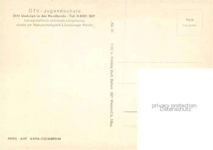 Undeloh oeTV Jugendschule Heidelandschaft Heidschnucken Undeloh postalisch nicht gelaufen nach 1965 Erhaltung siehe scans [FriedD77] Frierer