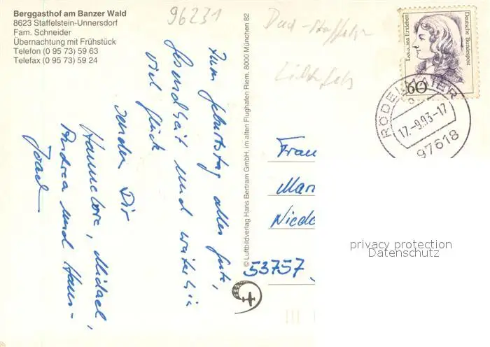 Unnersdorf Berggasthof am Banzer Wald Fliegeraufnahme Unnersdorf postalisch gelaufen 1993 Erhaltung siehe scans [WerneD78] WernPID7