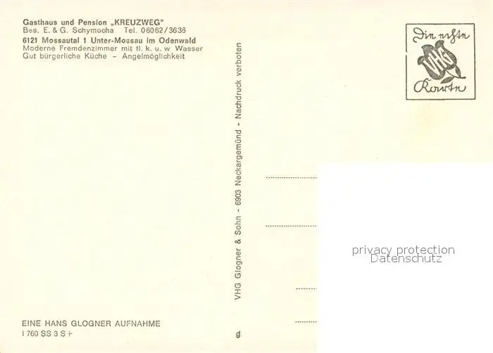 Unter-Mossau Gasthaus Pension Kreuzweg Gaststube Partie am See Unter-Mossau postalisch nicht gelaufen nach 1965 Erhaltung siehe scans [FriedD77] Frierer