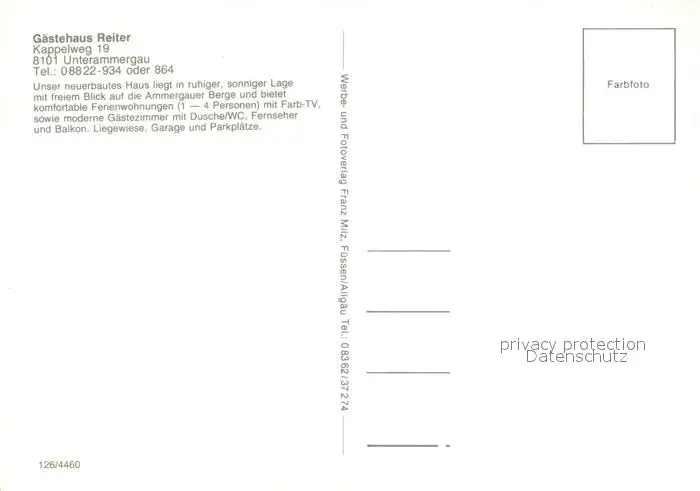 Unterammergau Gaestehaus Reiter Unterammergau postalisch nicht gelaufen nach 1965 Erhaltung siehe scans [FriedD77] Frierer