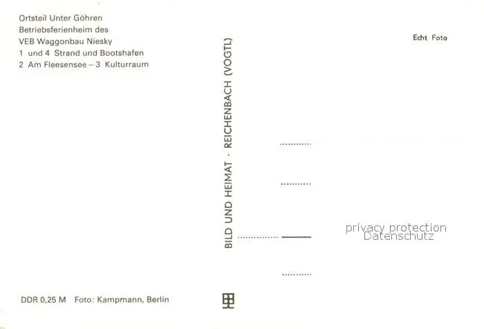 Untergoehren Betriebsferienheim des VEB Waggonbau Niesky Strand Bootshafen Fleesensee Kulturraum postalisch nicht gelaufen 1986 Erhaltung siehe scans [FriedD77] Frierer