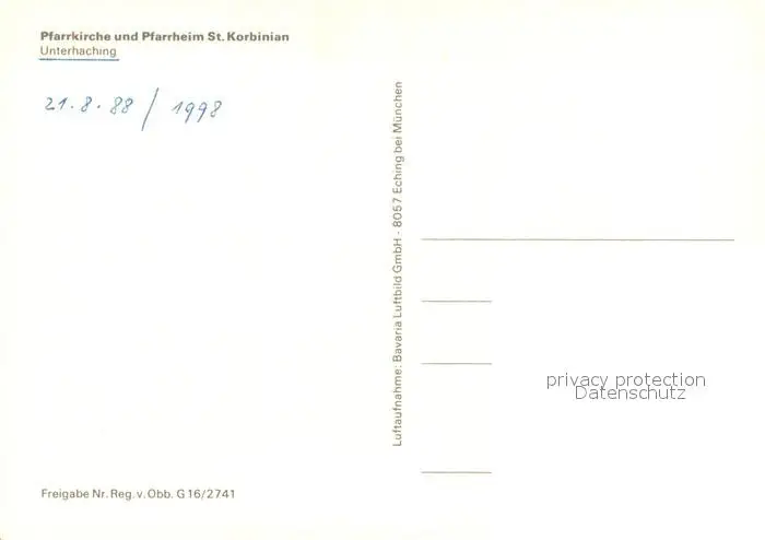 Unterhaching Pfarrkirche und Pfarrheim St. Korbinian Fliegeraufnahme Unterhaching postalisch nicht gelaufen 1998 Erhaltung siehe scans [FriedD77] Frierer