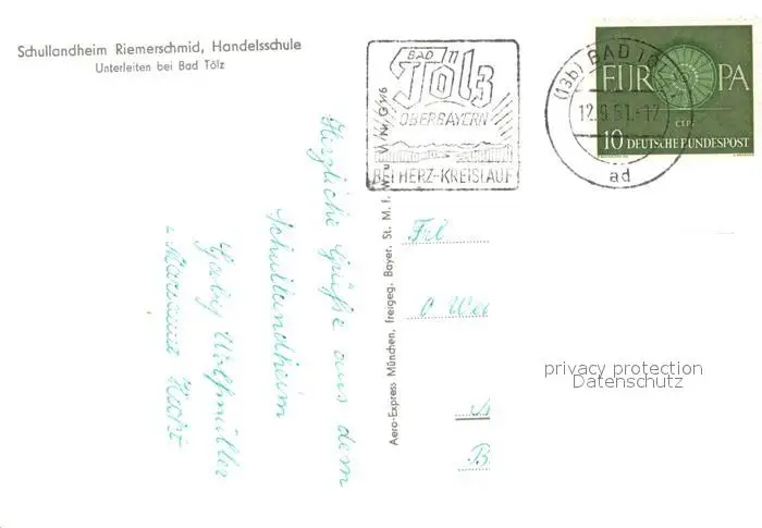 Unterleiten Kategorie Alte Ansichtskarten Postkarten bx94319 Unterleiten Schullandheim Riemerschmid Handelsschule Fliegeraufnahme Unterleiten postalisch gelaufen 1961 Erhaltung siehe scans [FriedD77]