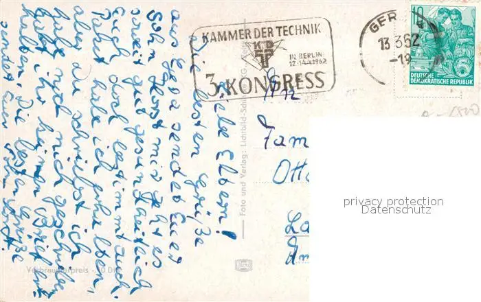 Untermhaus_Gera An der Elster Untermhaus Gera postalisch gelaufen 1962 Erhaltung siehe scans [WerneD78] WernPID7