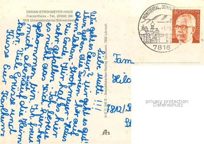 Untermuenstertal Dekan Strohmeyer Haus Freizeitheim Schwarzwald Untermuenstertal postalisch gelaufen 1971 Erhaltung siehe scans [FriedD77] Frierer