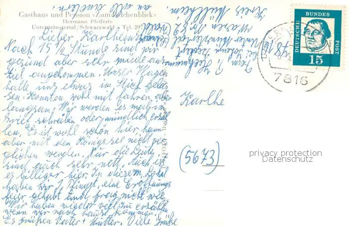 Untermuenstertal Gasthaus Pension Zum Belchenblick Schwarzwald Untermuenstertal postalisch gelaufen 1953 Erhaltung siehe scans [FriedD77] Frierer