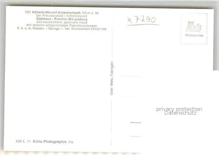 Untermusbach_Freudenstadt Gasthaus Pension Merzenberg Untermusbach_Freudenstadt postalisch nicht gelaufen 1921-1965 Erhaltung siehe scans [KathaD81] Kathoren