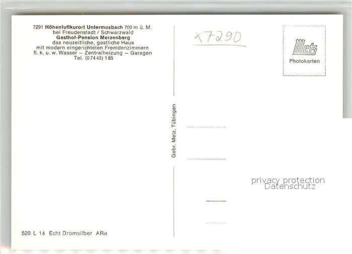 Untermusbach_Freudenstadt Gasthof Pension Merzenberg Untermusbach_Freudenstadt postalisch nicht gelaufen 1921-1965 Erhaltung siehe scans [KathaD81] Kathoren