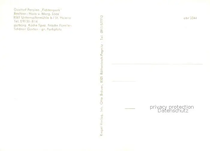 Unternaifermuehle Gasthof Pension Fichtenpark Partie am Bach postalisch nicht gelaufen nach 1965 Erhaltung siehe scans [FriedD77] Frierer