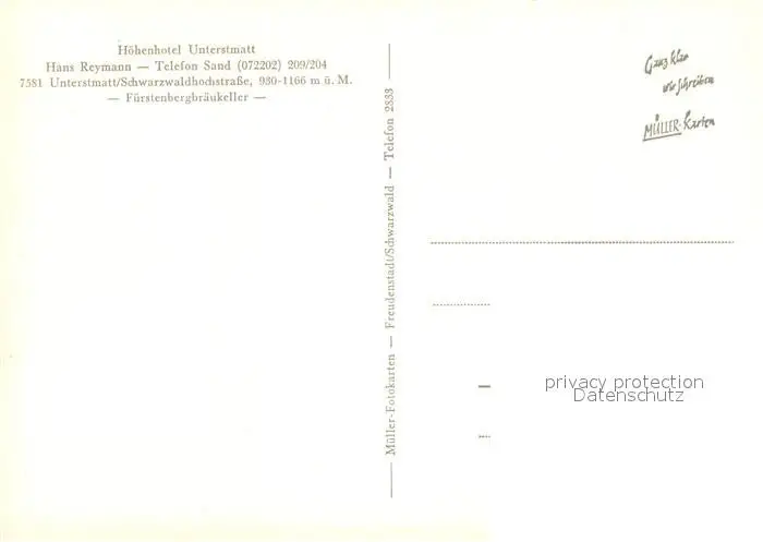 Unterstmatt Hoehenhotel Unterstmatt Fuerstenbergbraeukeller Unterstmatt postalisch nicht gelaufen nach 1965 Erhaltung siehe scans [WerneD78] WernPID7