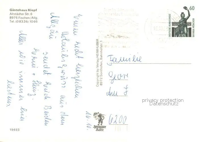 Unterthalhofen_Allgaeu Gaestehaus Klepf Zimmer und Ferienwohnungen Unterthalhofen Allgaeu postalisch gelaufen nach 1965 Erhaltung siehe scans [WerneD78] WernPID7