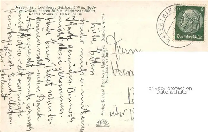 Unterthingau Edelsberg Geishorn Hochvogel Ponten Ortspanorama Unterthingau postalisch gelaufen 1921-1965 Erhaltung siehe scans [KathaD81] Kathoren