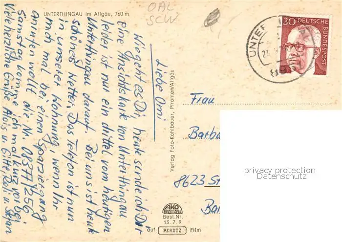 Unterthingau Kategorie Alte Ansichtskarten Postkarten bx55795 Unterthingau Unterthingau postalisch gelaufen nach 1965 Erhaltung siehe scans [NatalD47]