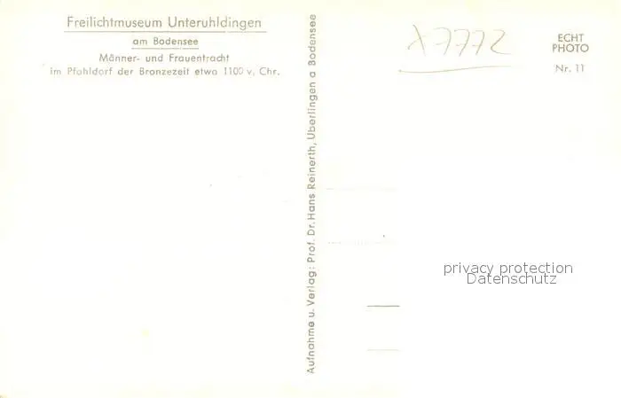 Unteruhldingen Freilichtmuseum Maenner- und Frauentracht Unteruhldingen postalisch nicht gelaufen 1921-1965 Erhaltung siehe scans [FriedD77] Frierer