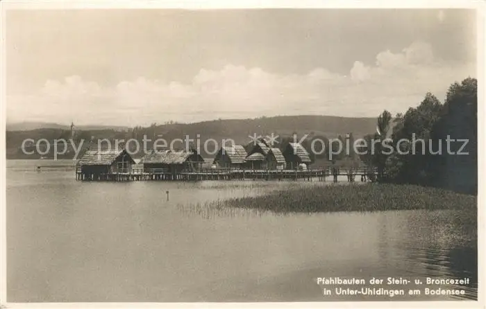 Unteruhldingen Pfahlbauten Stein Broncezeit Unteruhldingen postalisch nicht gelaufen 1921-1965 Erhaltung siehe scans [KathaD81] Kathoren