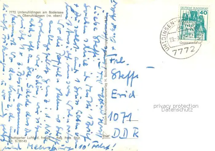 Unteruhldingen_Bodensee Fliegeraufnahme postalisch gelaufen 1977 Erhaltung siehe scans [FriedD77] Frierer