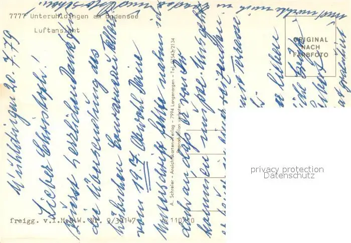 Unteruhldingen_Bodensee Fliegeraufnahme mit Pfahlbauten postalisch nicht gelaufen 1979 Erhaltung siehe scans [WerneD78] WernPID7