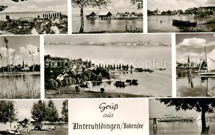 Unteruhldingen_Bodensee Teilansichten Pfahlbauten Faehren postalisch gelaufen 1959 Erhaltung siehe scans [WerneD78] WernPID7