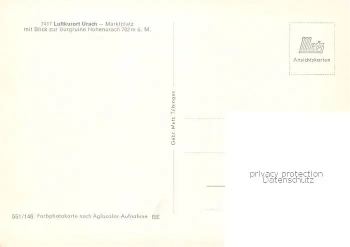 Urach_Bad Marktplatz mit Blick zur Burgruine Hohenurach Urach_Bad postalisch nicht gelaufen 1921-1965 Erhaltung siehe scans [WerneD78] WernPID7