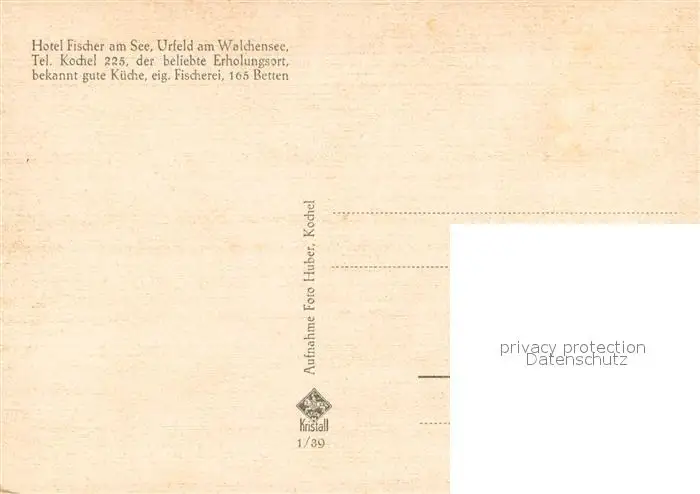 Urfeld_Walchensee Hotel Fischer am See Urfeld Walchensee postalisch nicht gelaufen nach 1965 Erhaltung siehe scans [WerneD78] WernPID7