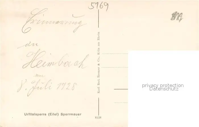 Urfttalsperre Sperrmauer Stausee Urfttalsperre postalisch nicht gelaufen 1928 Erhaltung siehe scans [FriedD77] Frierer